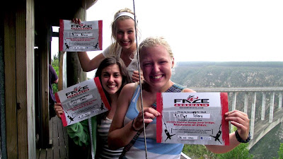 When it was time for the real thing most of us were leaning towards being more excited than terrified. There were the odd exceptions... *coughjessica&kendra* Jumping from the bridge was a totally surreal feeling and everyone who ended up jumping had no regrets. As you're flying through the air, leaving the pounding music on the bridge, all that you can think of is just how much you love Outtatown.